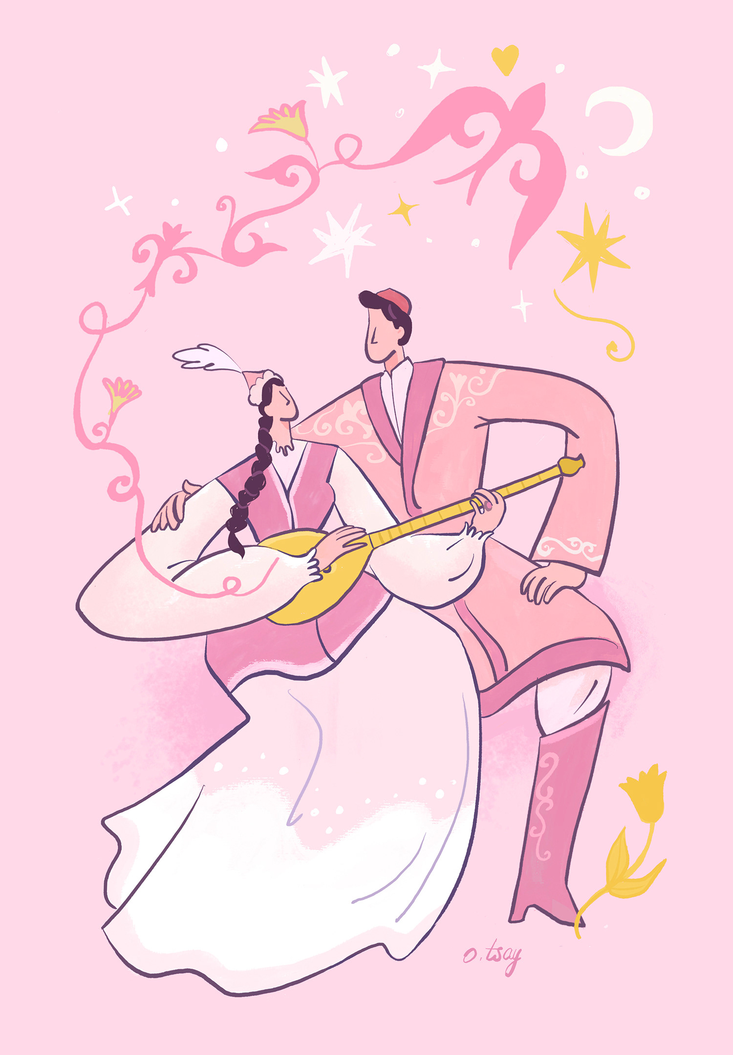 Мне нравится работать в журнальной, коммерческой иллюстрации. Иллюстрируя статьи, стремлюсь лаконично и нетривиально передать идею и настроение текста, создать для него свою атмосферу и персонажей. Рисую для печатных и онлайн-изданий, а также делаю заказы для бизнеса, стартапов, частных лиц и др. Параллельно создаю открытки, постеры и стикерпаки со своими работами, зачастую с национальными мотивами.